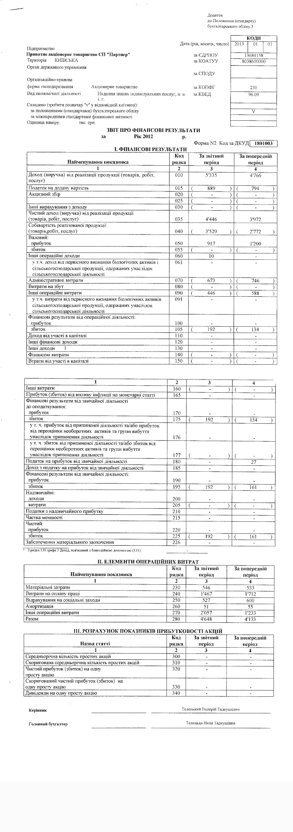 Звіт про фінансові результати 2012