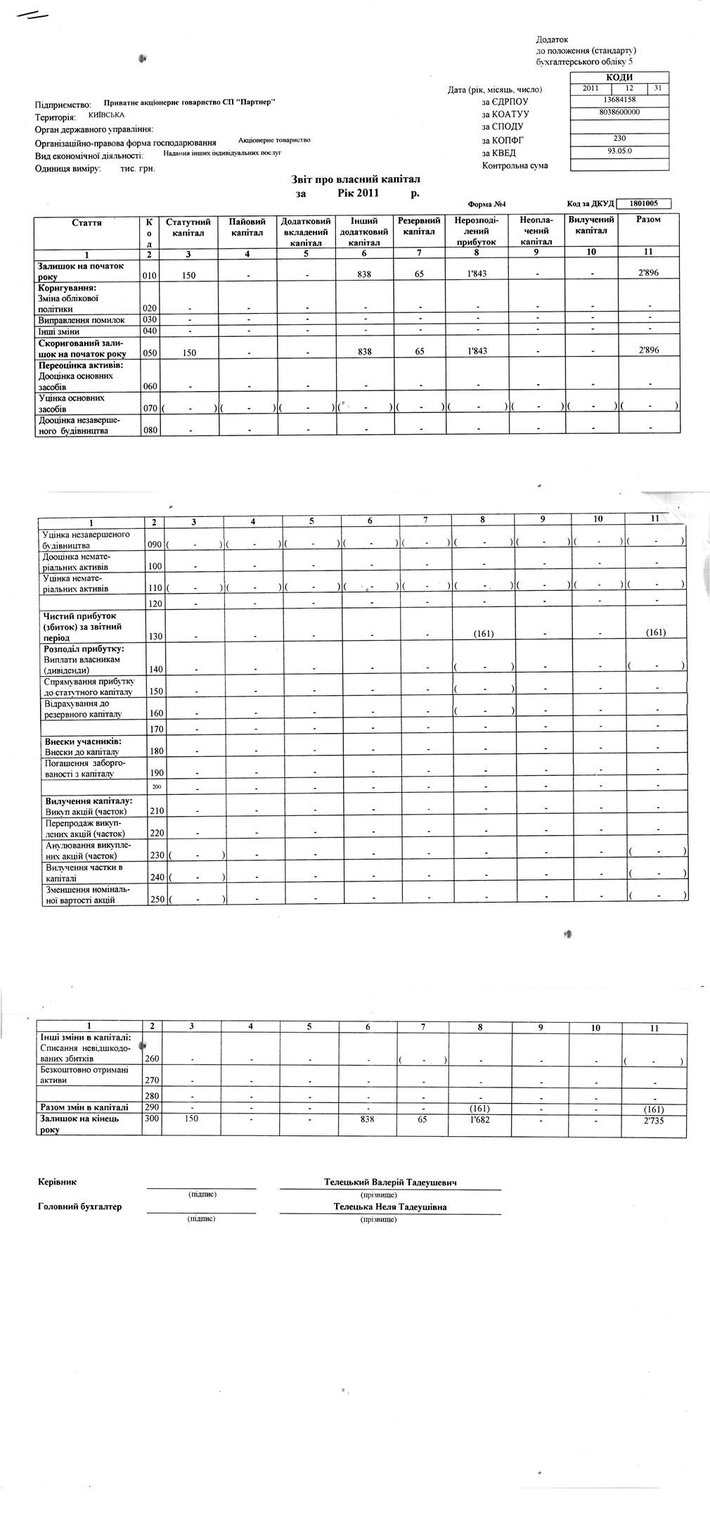 Звіт про власний капітал 2011